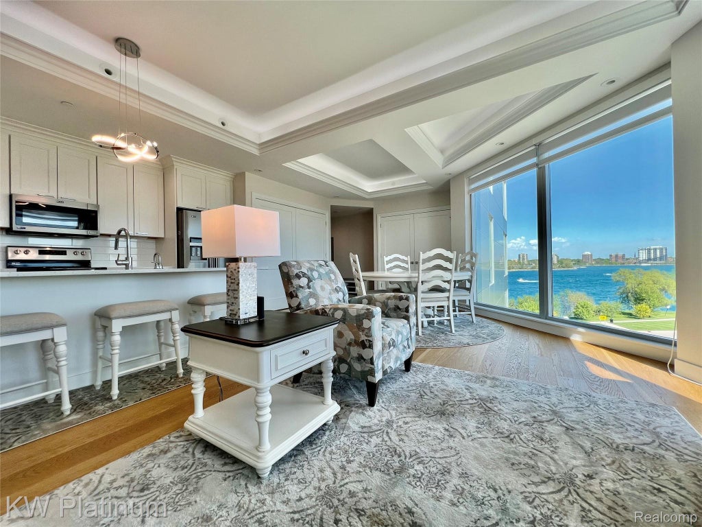 Come experience luxury waterfront living at Bluewater View Condos. Nestled along the picturesque shores, this newly constructed high- rise offers views of the Blue Water Bridge and St. Clair River. Within walking distance to Downtown Port Huron, residents enjoy a lifestyle of convenience and elegance. This exquisite 1-bedroom, 1-bathroom residence boasts an expansive open-concept layout, featuring a modern kitchen equipped with stainless steel appliances and sleek wood flooring. Inside, indulge in luxurious amenities such as a spacious walk-in closet, heated bathroom floors, and convenient in-unit laundry facilities. The allure of Bluewater View extends beyond the wall of your residence of your residence, with a host of shared amenities designed to enhance your lifestyle. Take a dip in the indoor pool or relax in the sauna, get your workout in the fitness center, or host guests in the private hotel suite. Enjoy gatherings on the Riverfront Terrace, Club Room, or Social Room complete with a wet bar and fireplace. Additional perks include indoor assigned parking, a workshop, storage facilities, and access to a rooftop deck offering panoramic views of the surroundings. Experience a lifestyle of luxury and convenience at Bluewater View Condos, where every day feels like a retreat.