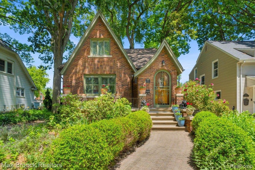 Charming 1920s Brick Tudor, thoughtfully renovated with modern updates and timeless character. Inside, enjoy refinished hardwood floors and fresh paint (2024), leaded glass windows, and an updated kitchen with cherry cabinets, granite counters, double sinks, and space for casual dining. The primary suite offers separate closets and an adjoining vaulted den or nursery that could also be used as an office. The finished lower level boasts a full bath, family room with custom built-ins, wet bar, cedar closet, and spacious laundry. Outdoors, entertain with ease on the brick paver patio with fire pit, explore the unique two-level gazebo/playhouse, and relax among lush perennial gardens. Upgraded mechanicals include a new tankless water heater, copper plumbing, updated electrical, and copper gutters. Attic ready for future expansion with electric and water already run for potential primary bath. A true blend of charm and modern comfort.