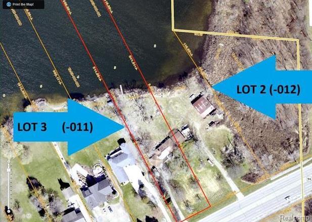 LAKEFRONT 2 parcels with legal showing 900 ft +/- sidelines into lake. Dimensions are for land mass not lake /approx measurements. Combined, land is approx 2 acres with larger amount of acreage into water. House on property had fire and has been removed. Water and Sewer at street. Master Plan 2012 shows Planned Neighborhood area called Highland East indicating possible 2 to 8 units per acre density might be allowed. Consult your engineer for development possibilities. Currently residential. Spring fed all sports lake flows into Oxbow Lake. Very scenic. Great highway visibility for your dream home even. Pole barn and 3 sheds on property.