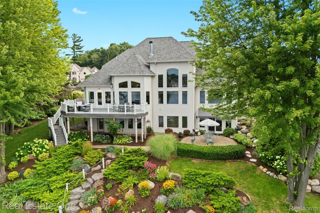 Absolutely beautiful custom-built home, with meticulously landscaped grounds, on 101 frontage feet on Pine Lake. Over 4600 sq ft of luxury living space offering 4 bedrooms and 4 baths, a gourmet kitchen featuring custom Cherry cabinetry, wood flooring, tumbled stone backsplash, a granite island perfect for entertaining, ample cabinetry and counter space, and a dual facing fireplace. Soaring ceilings and a wall of windows in the great room provide truly the best view that you can have on the lake. This view is also present in the primary suite, which features another wall of windows, trey ceilings, and a luxurious primary bath. Newly remodeled finished basement provides a great space for gathering with friends and family. Enjoy sunrises and sunsets from the sunroom and a new expansive treks deck with glass panel railings. Home offers a full house generator, a new furnace and new air conditioner. New dock and fortified break-wall. FANTASTIC lake for fishing, kayaking, swimming and pontoons!