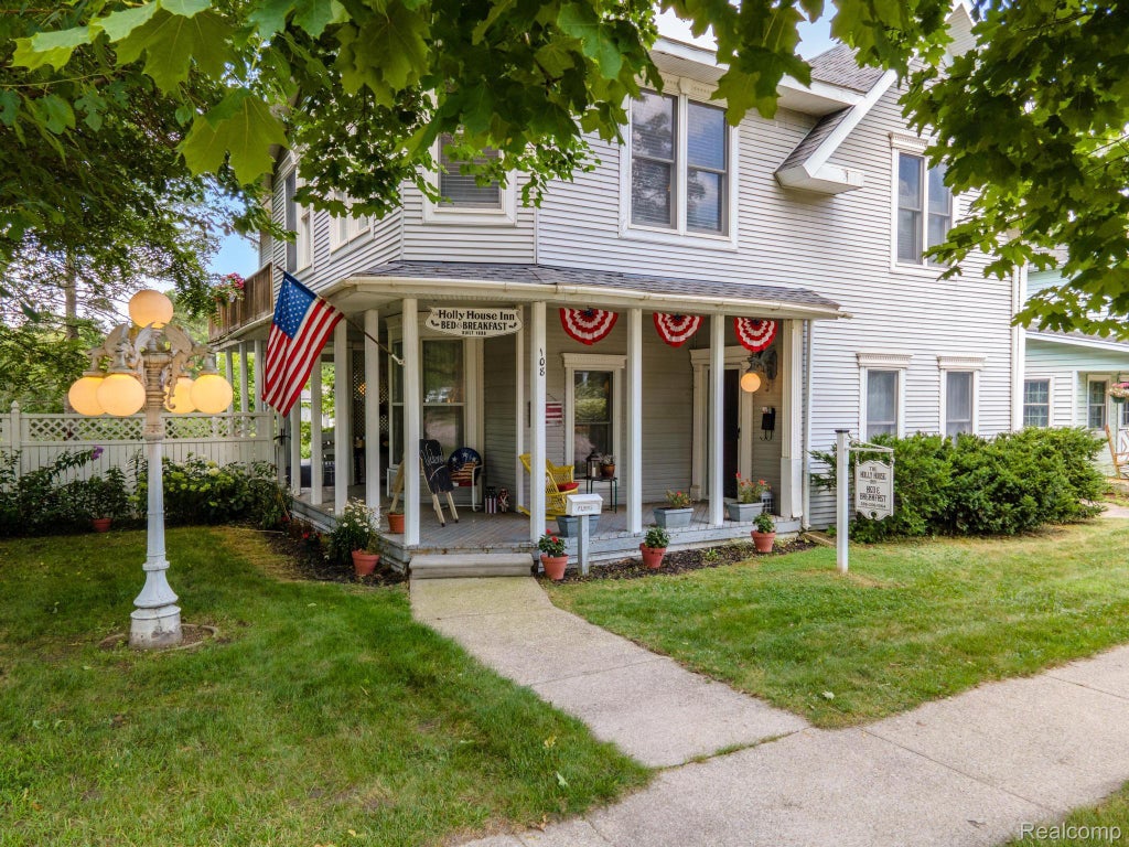 Welcome to this charming historic home in the heart of Historic Holly! This beautiful four-bedroom, three-bathroom residence offers a blend of timeless elegance and modern conveniences like an open concept, wrap around deck, and grand ceilings throughout each level of the home. This home has had numerous upgrades, including a county approved and inspected foundation enhancement. You can rest easy knowing this property is built to last. Craftsman and wood workers will enjoy the benefit of the oversized two bay garage with workspace and a wood burning stove for winter warmth and comfort. Currently operating as a delightful bed and breakfast, the property is versatile enough to be your dream family home, converted to multi-family and/or continue as a welcoming Bed and Breakfast or approved business of your choice. It has also been utilized for Christmas films like Christmas at the Holly Hotel! It’s conveniently located right across the street from a very successful wedding venue and is the only approved bed and breakfast in Holly. Making this property a truly one of a kind opportunity. This home is also near two state parks, backs up to local Cyclone Park, and plenty of local waterways perfect for kayaking, fishing, and other outdoor adventures. The home is situated in the Holly Area School District. Come and experience the unique charm and endless possibilities this property has to offer!