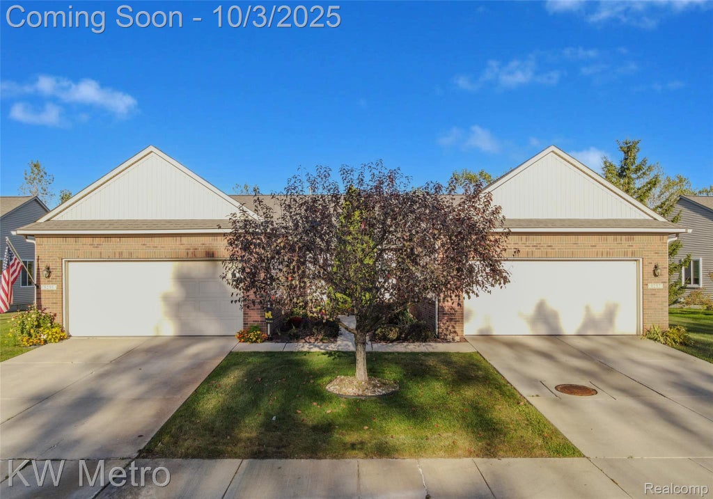 Welcome to this charming and well-maintained 2-bed, 2-bath end-unit ranch condo offering 1,214 sq. ft. of living space. The well-designed open floor plan provides a spacious living room with a cathedral ceiling that flows into a dining area and kitchen with plenty of cabinets, counter space and island seating. The living room is bright and comfortable with a portable gas fireplace and a door wall leading to the deck, perfect for enjoying the outdoors. The primary bedroom boasts a vaulted ceiling, spacious closet and private bath while the second bedroom, also featuring a vaulted ceiling and generous closet space can easily serve as a study or guest room. A second full bath with walk-in shower and first floor laundry complete the main level. The expansive basement with daylight window offers incredible potential for finishing, while also accommodating ample storage. The 2-car attached garage is an added bonus, offering easy, direct access into the condo. Upgrades include a newer sump pump, washer, dryer, refrigerator, dishwasher and a newer roof. Prime location in the complex! Original owner!