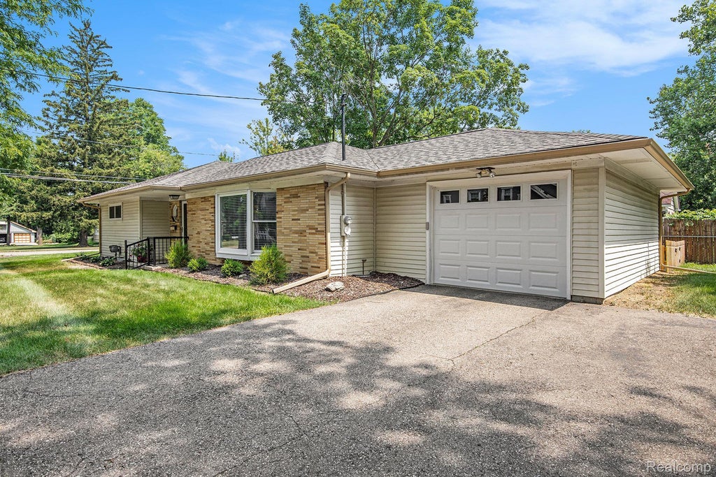 Wonderfully updated 3-bedroom ranch in the heart of the Village of Holly with fenced backyard on large corner lot. Short walk to downtown Holly and a short drive to 75. Updates since early 2024; complete tear-off replacement of roof, new garage door, access door in living room for direct access to fenced backyard & patio, new refrigerator, electric range, washer & dryer. Washer & dryer hookup placed in one of the bedroom closets with original laundry hookup remaining in the basement. Also new custom outside storage building in the spacious side yard. Newly installed tile walk-in shower and, finally, new blinds throughout the house. The cozy living room features a natural fireplace bordered by built-in shelving. The unfinished basement offers plenty of opportunities whether additional rec room, home office and home gym, and also has a cedar-lined closet. Occupancy at closing!