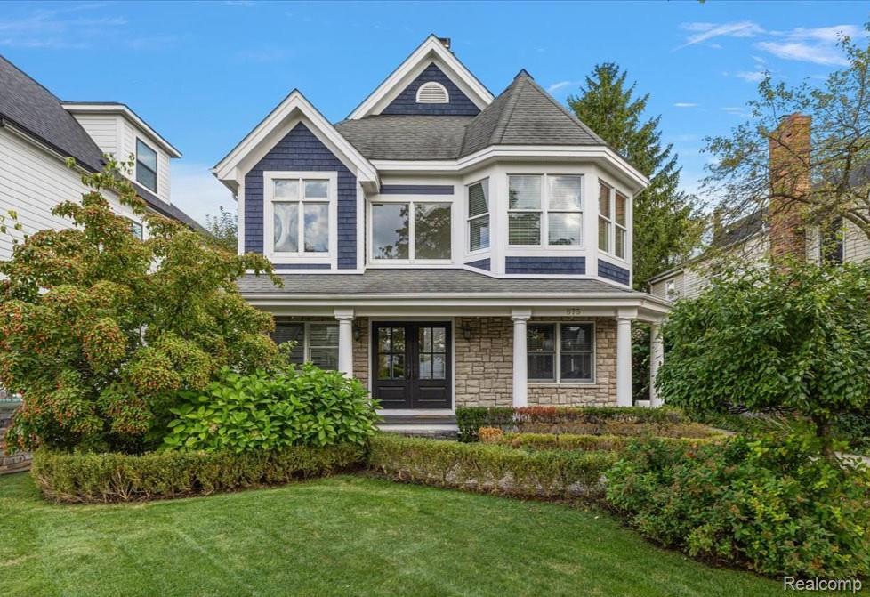 Total Renovation in Prime Downtown Location! Modern Victorian curb appeal with charming wraparound porch. Proper two story foyer with oversized windows that flood the space with natural light. Fabulous gourmet kitchen featuring a substantial leathered granite island, breakfast nook, and top-quality appliances and finishes—all opening to a spacious family room with a cozy fireplace, elegant coffered ceiling, and walls of windows to the backyard. A flexible formal dining/living room and a private office with French doors, custom built-ins, and fireplace provide refined spaces for entertaining and everyday living. Upstairs, discover three spacious bedrooms, each with its own private bath and walk-in closet. The primary suite is a true retreat, offering vaulted ceilings, a gas fireplace, vanity, walk-in closet, and a luxurious bath with soaking tub and oversized marble shower. Convenient second-floor laundry completes this level. Enjoy outdoor living on the paver patio surrounded by professional landscaping and a private, fenced back yard. Finished basement with newer carpet and good storage. Two car detached garage. This exquisitely renovated home offers the best of both worlds- a peaceful, private setting with ample parking, yet just steps from shops, restaurants, schools, and parks. An unbeatable downtown lifestyle awaits!