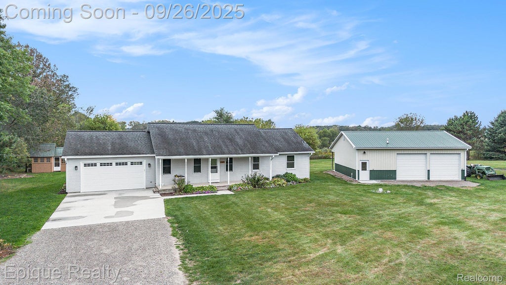 This is a rare opportunity to own a beautifully refreshed 3-bedroom, 2-bath ranch home nestled on over 18 acres of pristine Michigan countryside! This inviting split ranch layout offers privacy, with the spacious primary suite thoughtfully separated from the additional bedrooms. Step inside to discover fresh updates throughout, creating a move-in-ready atmosphere. Outdoor enthusiasts will fall in love with the expansive acreage, perfect for hunting, recreation, or simply enjoying the peace and quiet of nature. A standout feature is the completely finished pole barn—ideal for hobbyists, storage, or transforming into your dream workshop. Whether you’re seeking a private retreat, a place to entertain, or a home base for outdoor adventures, this property delivers. Updates and perks include concrete apron in front, concrete porch out back, Barn Electrical – (2) 220V 30amp on exterior. On Interior it has (1) 220V 50amp, (1) 220V 40amp, and (2) 220V 30amp. 9 ft garage doors on barn, 8 ft garage doors on home.