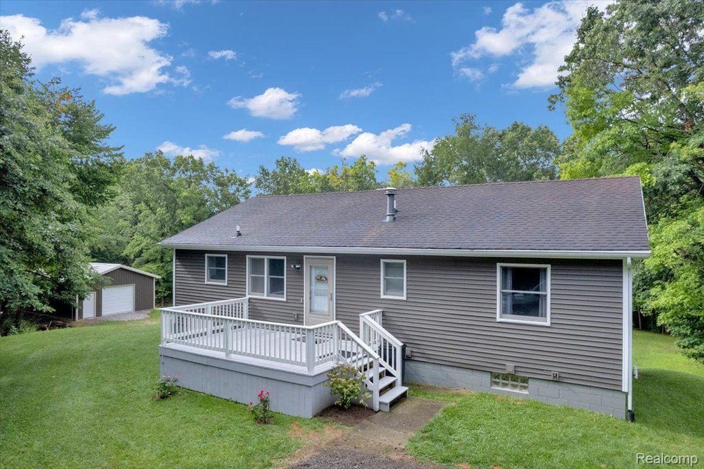 Only a short hour drive from Detroit, and you'll feel like you've escaped deep into Northern Michigan. You'll love this beautifully updated (2021) 3 bed, 2 bath home on nearly 12 acres, on all-sports Long Lake- one of Lapeer County's best-kept secrets. With a finished walk-out basement, brand new 24x32 pole barn, and your own private dock, this is a hunter/fisherman's dream- note all buck mounts you see pictured were from this property. Perfect for year-round living, or your own personal weekend/summer paradise. New furnace/AC 2020, New windows, New roof in 2010. Note: Lake access trail is currently very wet and overgrown. It will require some work to get to the lake, but absolutely worth it to access your own slice of Heaven!