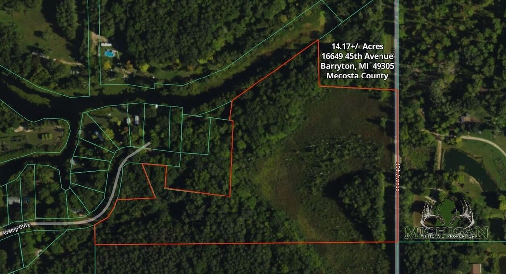 Zillow & Realtor ''Contact Agent' button does not connect you to Listing Agent, if viewing on these sites, please scroll down to contact Listing Agent directly. If you have been looking for a smaller property in west central Michigan that you can hunt, fish, go boating, and possibly build your next home or getaway cabin, then you need to check out this unique property near Barryton in Mecosta County! Lots of different options available for the next owner with this wooded waterfront parcel residing in the well-known Martiny Chain of Lakes area! Say hello to just over 14 acres of recreational and potentially buildable land with frontage and access on 2 different roads. The property is primarily all wooded with a decent variety of hardwoods and some pines, both high and low ground.....along with frontage on the eastern channel of all-sports Tubbs Lake. Most of the property can be accessed from Airstrip Drive, which is a dead end road that runs along the southeastern side of the lake. There is also frontage and access to a peninsula along 45th Avenue that overlooks the low marshy area on the eastern side. A small meandering creek even flows through a portion of the property into the lake! Located just east from US-131, minutes to Big Rapids, just over an hour from Grand Rapids, and under an hour to Cadillac, makes for an easy commute, too! Land with this many different features, especially having direct lake frontage, can be difficult to find, so don't wait and call me today for your private tour! **Maps contained on our sites are there to simply depict the overall layout or shape of a given property and show what it looks like from an aerial view. These maps are neither a legally recorded map, nor any type of a legal survey and should never be used as such. Also "Acreage" amounts are displayed as according to the information we have obtained through local government and are in no way guaranteed or warranted to be exact.**