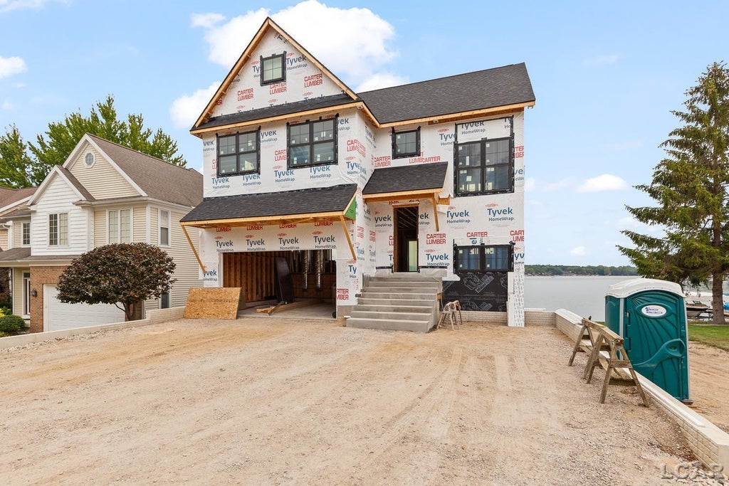 Discover your dream retreat with this magnificent new construction on the shores of Devils Lake, crafted by the renowned Michelle Construction. This thoughtfully designed home boasts an open floor plan featuring a chef's kitchen, five spacious bedrooms, a cozy bunk room, and expansive great room and recreation room, perfect for entertaining family and friends. Enjoy the outdoors with ample deck and patio space, plus additional lakeside garage storage for all your water toys. Embrace lakeside living at its finest!