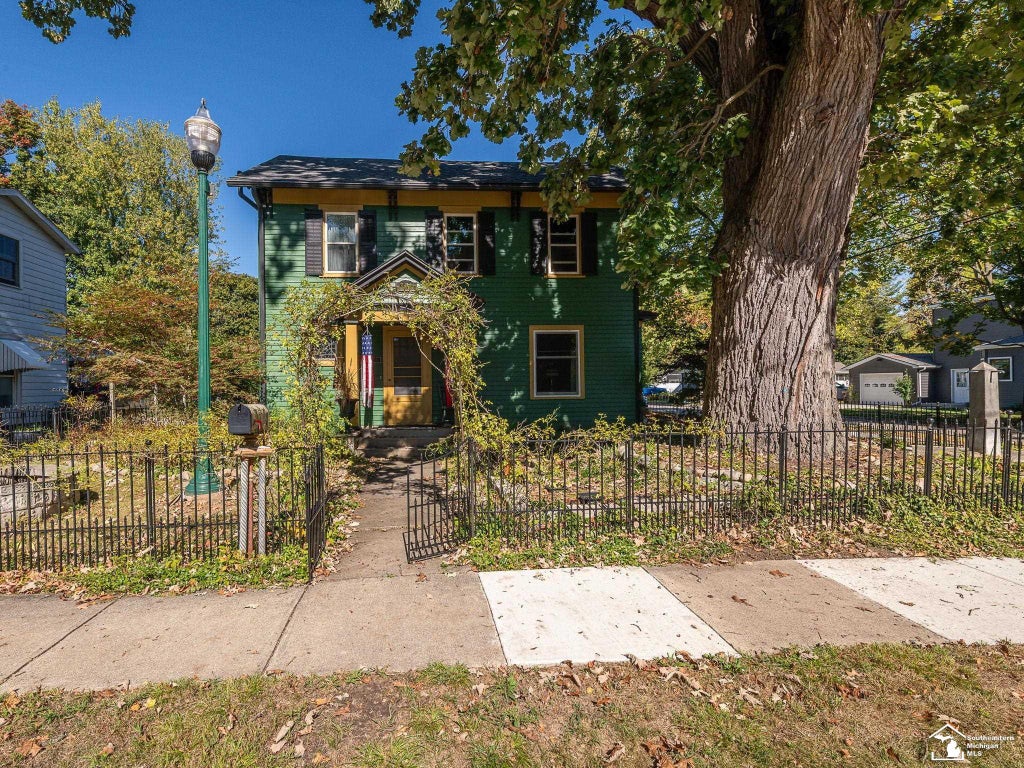 Walking into this stunning, historic, one-of-a-kind home allows you to enjoy spacious rooms, high ceilings, hardwood flooring, window seats, bay windows, leaded glass accent windows, phenomenal work & play spaces all presented with timeless elegance. This classic historic home has been lovingly updated with New Furnace-2024; New A/C-2021; Exterior painted professionally by Rhino Shield w/25-yr transferable warranty-2024; New Kitchen Door & Storm Door-2024; New Door in Sun Room-2024; New Living Room & Dining Room Renewal by Anderson Windows-2024; New Sliding Glass Renewal by Anderson Door to Patio-2023; Interior Rooms (except Kitchen & Bathrooms) professionally painted-2023; New Roof, Gutters & Guards-2022; Kitchen remodeled & New Appliances-2022; Upstairs Full Bath Remodeled-2022; New Wrought Iron Fence-2021. All of these updates combine to bring the highest level of a historic home providing modern convenience. The grand wooden staircase draws you upstairs to the bedrooms, full bath, sitting area, walk-in closet & laundry room. The copper ceilings take you back in time to an exquisite period in history. The outdoor gardens & artisan's patio offer excellent spaces for entertaining or simply enjoying the quiet elegance of the stately gardens & an escape from the busyness of the world. The antique street light in the front yard provides a soft light to welcome you home.