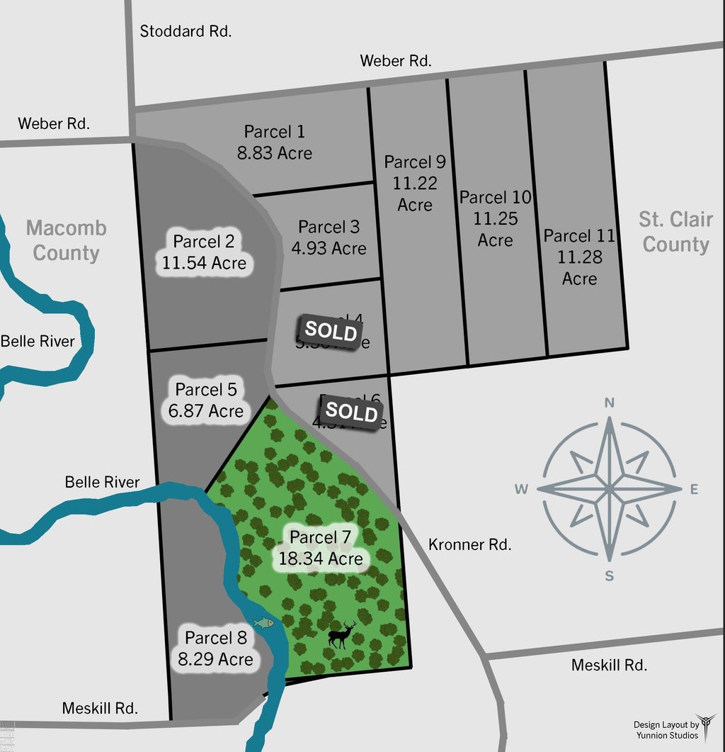 PRICE REDUCED!! Private hunting and fishing on the Belle River - first time on the market! An incredible opportunity to own an 18.34 acre wooded parcel in Columbus Township just off of Meskill. This parcel borders the Belle River with and incredible 926 ft of frontage! 851 ft on Kroner Rd x more than 576 ft deep. Sellable parcel splits are STILL available! Close to Macomb County, this property was recently split from a larger parcel. Information available on bank lot loans.