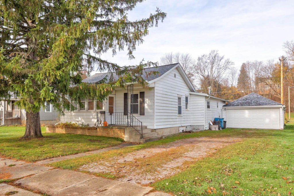 Check out this cute bungalow in the city of Vassar! Welcomed by a brick-faced front porch and flower bed, enter and you'll find 2 Bedrooms, a potential 3rd and 1.5 Bathrooms. Inviting wood shiplap covered front porch/entry way and freshly refinished original hardwood floors in the living room and bedrooms. Open concept with dining area and bar seating in the matching wood "rustic" kitchen giving it the cozy cabin feel. Potential 3rd bedroom gives options for growing families. Full bathroom has tile floors & tub surround. Extra 1/2 bath adds convenience. Vinyl windows, separate first floor laundry and Appliances included. The wood theme continues in the rear entrance room that has direct access to the back yard and garage, as well as ceramic tile flooring. 1.5 Car attached garage with rear built on workshop areas. Nice city lot. Professionally sealed crawl space. Roof 5-6 years old, Furnace new in 2020 and newer water heater taking care of the major things.