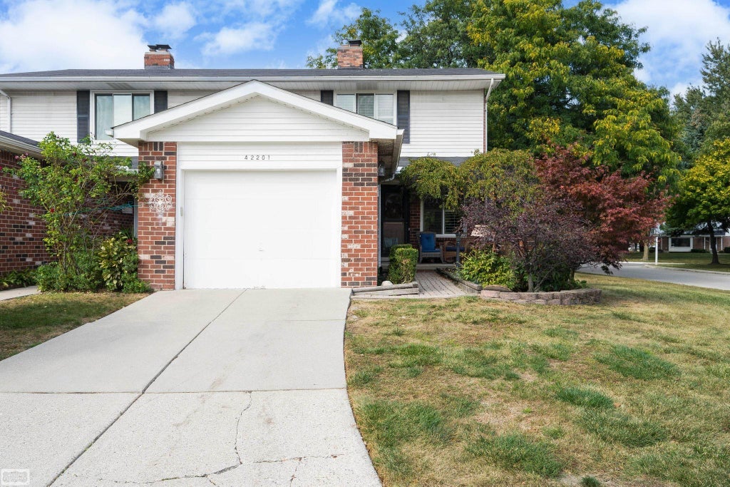 Welcome home to comfort and convenience in this 2-bedroom, 1.5-bath stylish two-story end-unit condo located in a mature, tree-filled community in Clinton Township. Backing up to open green space, this condo offers privacy, natural views, and a relaxing atmosphere. Step into a welcoming living room with a gas fireplace, perfect for cozy evenings. Plantation shutters throughout add timeless charm and light control. The formal dining room opens to a private patio through a sliding doorwall, ideal for outdoor dining or quiet mornings. Upstairs, enjoy two generously sized bedrooms one with private balcony and both with ample closet space. Full bath has been remodeled by REBATH featuring modern finishes. A half bath on the main floor adds convenience for guests. The unfinished basement offers flexible space for storage, hobbies, or future customization, and includes in-unit laundry. This condo is a smart choice for anyone seeking space, style, and location. Updates: HWT, Storm Door, Door into Garage, Balcony. HOA fee includes water.