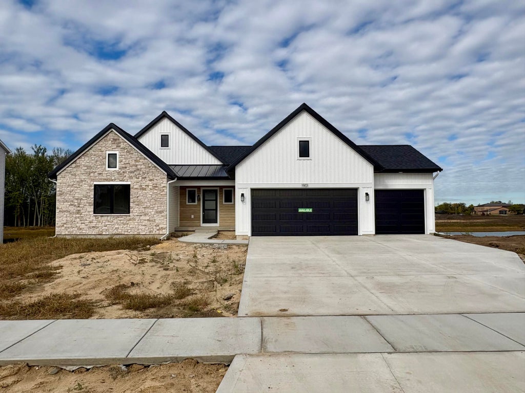 Welcome to the Sequoia brought to you by JTB Homes located at Kuipers Meadow Community in the Byron Center school district. With over 2,600 finished sq ft, this stunning walkout ranch sits on a private lake and features 4 bedrooms, 3.5 baths, and a 3-stall garage. The main floor offers a cathedral ceiling throughout the family room with electric fireplace, kitchen with island and large pantry, dining area, Michigan room, and entry. The primary suite includes a tray ceiling, ceramic tile shower, double vanity, and large walk-in closet. Two additional bedrooms, laundry, and mudroom with bench complete the main level. Modern stair railing to basement. The finished walkout basement adds a spacious rec room, bedroom, and full bath. Enjoy the deck with stairs and patio. Buyer(s) eligible for 4.99% rate lock offered by seller. See documents for more details. Must be a full price offer. Estimated completion Oct