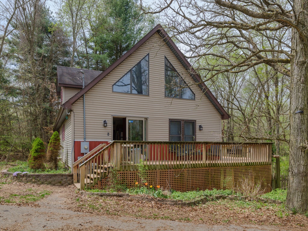 This house might be a unicorn. Four bedrooms, a full bath on every level of the home, almost 2,600 finished sqft of living space, over 800 sqft of outdoor deck wrapping around three sides, a two car garage with a loft above it, just over an acre, the Kalamazoo Promise, Oshtemo taxes and ordinances, and a price just under $330,000. There's plenty space to play or grow food, all sorts of cool trees and plants to appreciate as they bloom and grow, and enough storage space to enjoy all kinds of lifestyles. The main floor laundry has been updated and so have the rec room and bedroom in the basement, along with the deck. The vaulted ceiling makes the main floor feel like a Chalet in the woods. Most houses have some of this stuff, but very few, especially for the price, give you all of this.