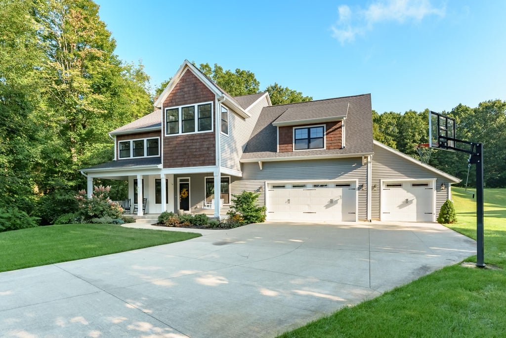 Seller offering $10,000 credit towards closing costs!!! Welcome to a truly exceptional residence offering over 5,000 square feet of finished living space, set on a picturesque acre lot designed for privacy, comfort, and timeless appeal. This is not your typical cookie-cutter home -- every detail has been thoughtfully crafted for style and distinction. Step inside to discover rich hardwood floors, elegant coffered ceilings, and architectural touches that set this home apart. The heart of the home is the stunning chef's kitchen, beautifully appointed with high-end finishes, custom cabinetry, and generous workspace -- ideal for entertaining and everyday living.Each of the four spacious bedrooms features a private ensuite, providing both luxury and convenience for family and guests. The primary suite is a true sanctuary, with lavish proportions, in a spa-inspired bathroom. Unwind in the dedicated hot tub room, or enjoy the outdoors year-round from the covered front and back porches, ideal for morning coffee or evening gatherings. The home's exterior shake detailing adds warmth and curb appeal, further emphasizing its one-of-a-kind design. If you're seeking a refined, well-designed custom home with character and quality throughout, this property is a must-see.