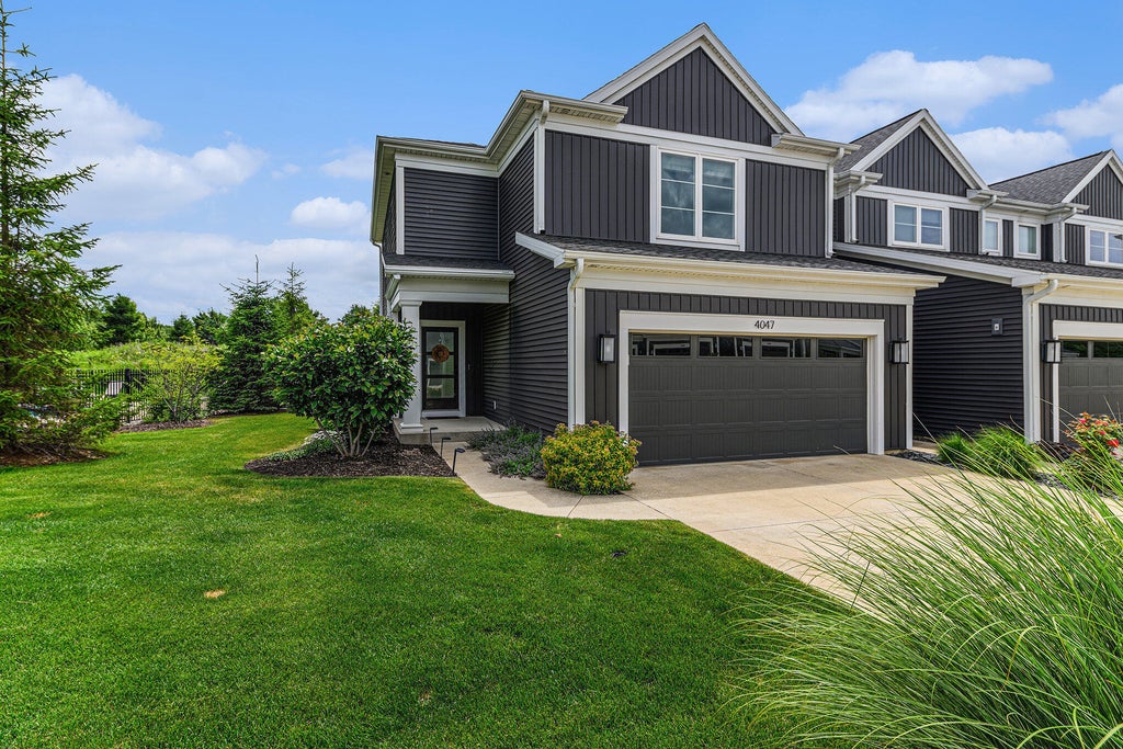 Maintenance free and resort living at 4047 Enclave Way. This fantastic end unit condo is steps away to the immaculate pool with a peaceful private setting. The Main floor has a super stylish open quartz island Kitchen and SS Appliances, tons of cupboards, a large pantry in the mudroom leading to 2 car garage. Convenient 1/2 bath off entry. The Living room with cozy gas fireplace, plenty of space for a sectional, and a generous dining area and a sliding door to patio. Perfect entertaining space! 3 Bdrms upstairs includes a Primary Suite, huge walk-in closet and dual solid surface vanity and fully tiled in low threshold shower. Hallway Full Bath has solid surface vanity. Note the 2nd Story Laundry ( W/D included) The 2nd and 3rd Bedrooms have added details like extra crown trim, customlighting and some closet organizers in the above average sized closets. Downstairs, the Rec Room has a bank of built-in shelves and cupboards, plus a separate space for an office or exercise room. Storage and Water Softener in unfinished side. All window treatments included in this townhome style condo. Just move right in and enjoy! HOA Maintains Landscaping, walking trail, lawncare, trash and snow removal and the pool area.