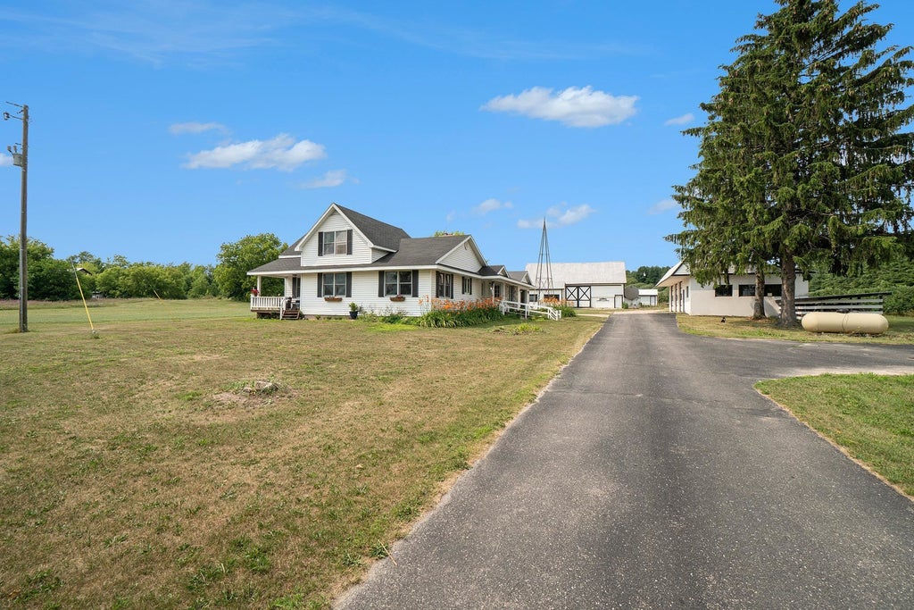 Create, or expand your own Leelanau Legacy, right here upon this quintessential Leelanau Farmstead totaling 217-acres. Farm House is absolutely charming and has been tastefully updated (see updates list). This Farm is in productive orchards, think out-of-the-box for agri-tourism, possible cider, winery, ranch/equestrian, wedding venue and more! Fantastic hunting property, too! Located in one of the quietest, most beautiful areas of the county. This property is Iconic and includes multiple outbuildings, cooling pad, warehouse, worker's quarters and homestead. Areas of the property have sweeping views of Lake Michigan, Manitou Islands, and Pyramid Point! Currently a working farm (cherries, apples and more). The property also has a perpetual Leelanau Conservation easement (no splits), but will remain as beautiful agricultural lands in Leelanau County for years to come. Don't miss out on owning one of the few 200+ acre working farms in the entire county! Made up of multiple property tax parcels. See green D for documents. Showings by appointment only. There is a renter in the home until approximately mid-September. All measurements and listing details are deemed reliable, but not guaranteed as most have been obtained from seller and third-party sources. All data should be verified by buyer or its' agent.